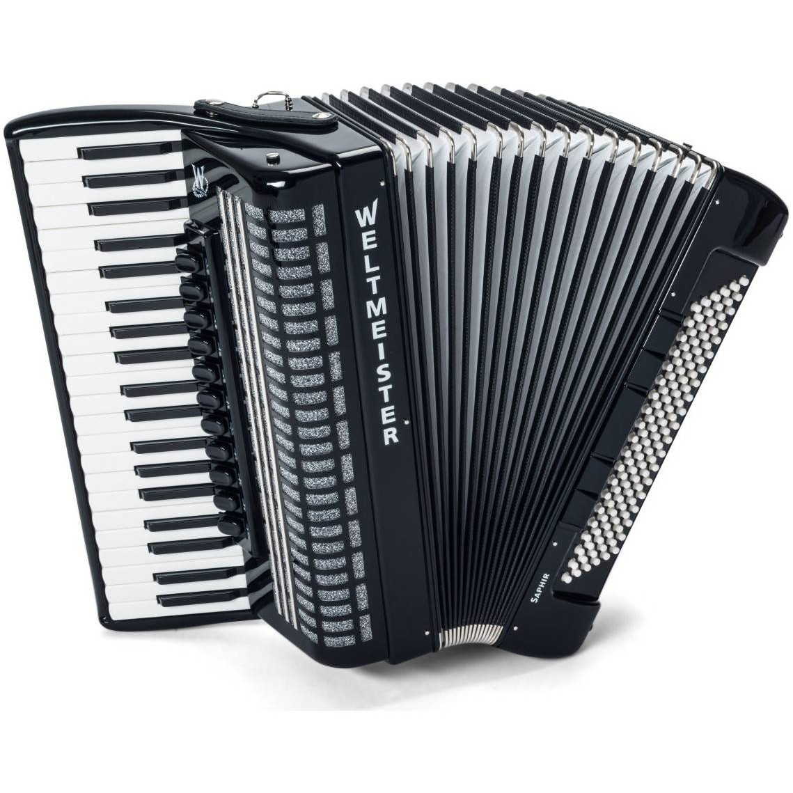 WELTMEISTER Saphir - 41/120/IV/11/5 SI-BK - это полный, четырёхголосый аккордеон с итальянскими голосами. Инструмент профессионального уровня, имеет отличную динамику меха, сочное и плотное звучание. Благодаря техническим и звуковым характеристикам, а также надёжности и неприхотливости, данная модель получила мировое признание и пользуется широким спросом среди любителей и профессионалов. Ремни и футляр в комплекте.